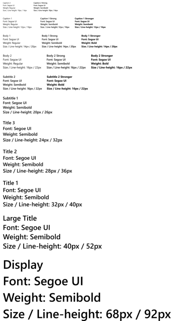 Now that we know Microsoft uses Segoe UI as the font, it is important to understand what a “type ramp”, also known as a “type scale”, is. A type ramp is a range of type sized related to each other by a growth ratio. It provides a standardized set of font sizes.