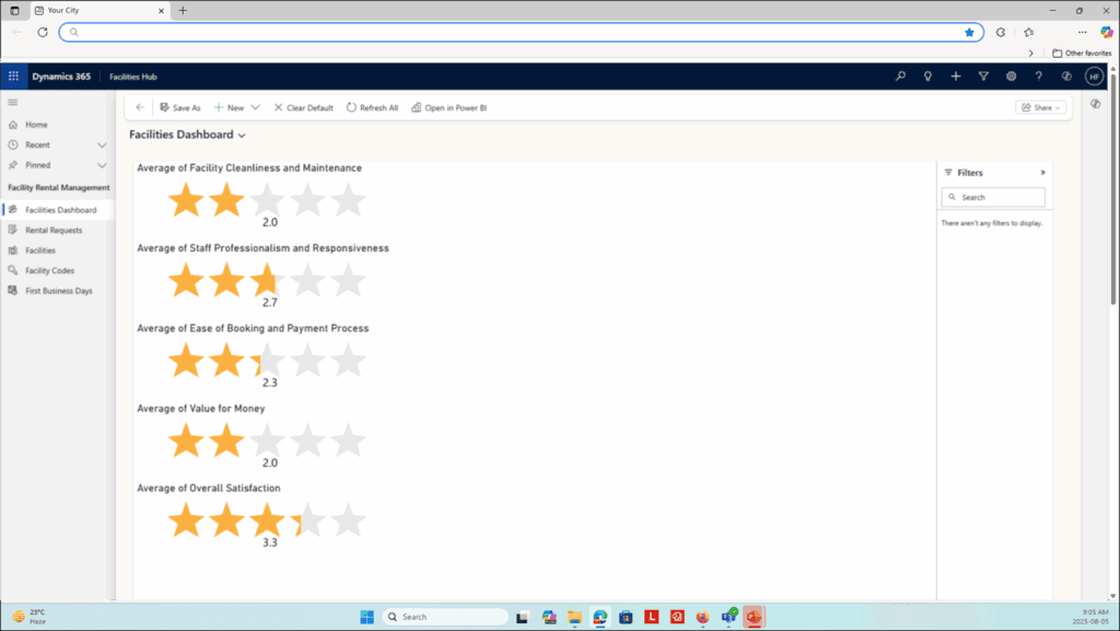 Our Municipal Facilities Booking Application, built on Microsoft Dynamics 365 and the Power Platform, is designed to modernize how your organization manages facility rentals and community spaces. By providing a secure, self-serve portal and automated approval workflows, the solution streamlines booking requests, access management, and communication. With centralized dashboards and integrated reporting, it empowers your team to deliver faster, more transparent, and more efficient facility management services.