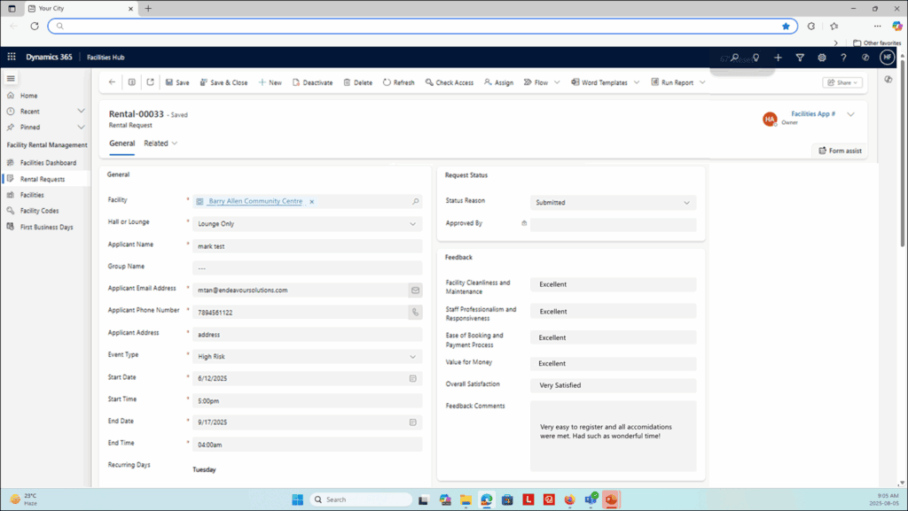 Each booking request is tracked as a case within Dynamics 365, ensuring transparency and accountability across the rental process. Staff gain centralized visibility, while automation drives efficiency and reduces errors.