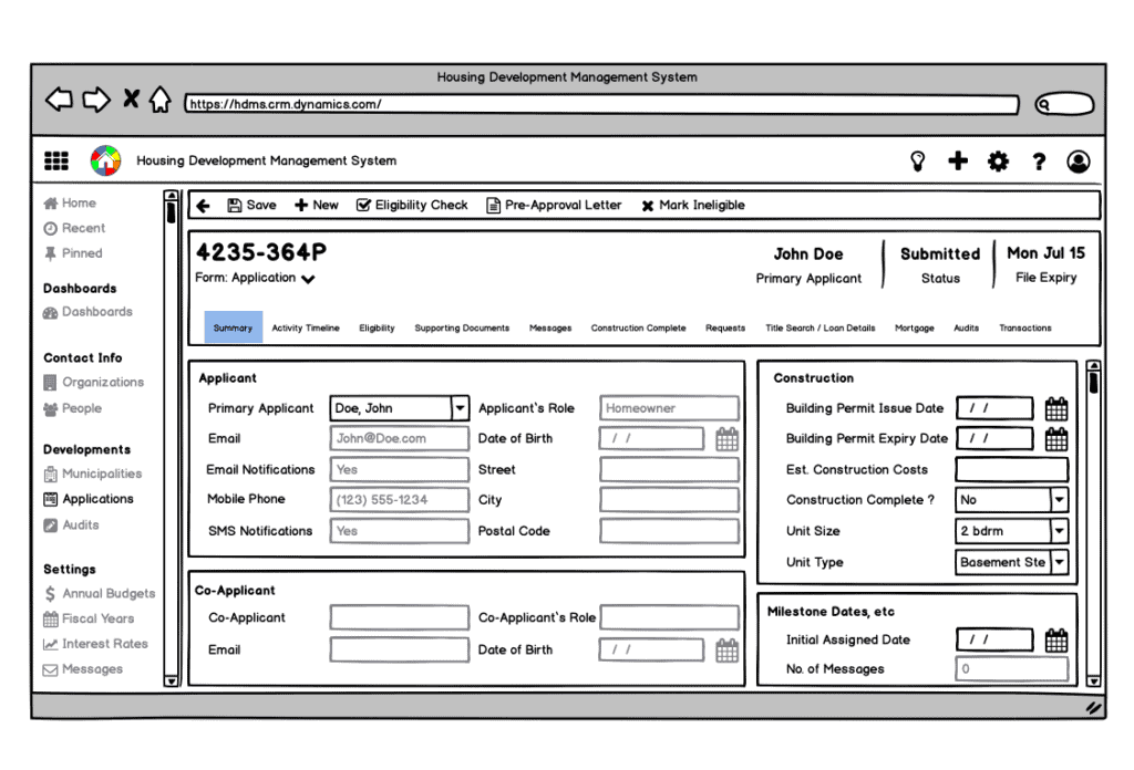 Our Housing Development Accelerator framework and apps are based on Microsoft Dynamics 365 and Power Platform. The goal of implementing a custom portal and set of business applications is to support your teams ability and capacity to expedite your Housing Program’s self-serve applicant submission process, intake and document review process, citizen/applicant case management, and the eventual project close-out processes within your government or non-government organization.