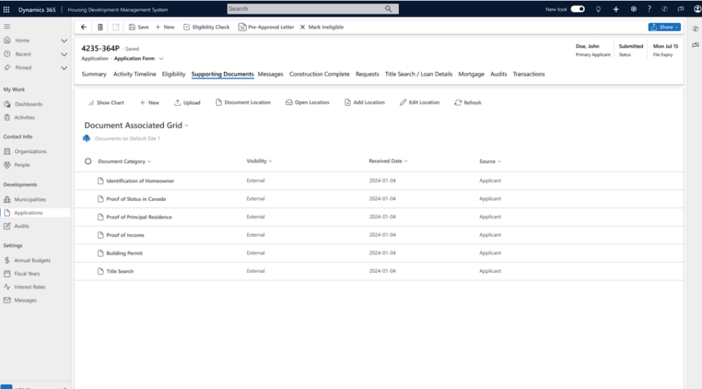 Client Management within the Housing Development Accelerator centralizes applicant interactions, simplify case handling, and provides real‑time visibility into application status to improve service efficiency.