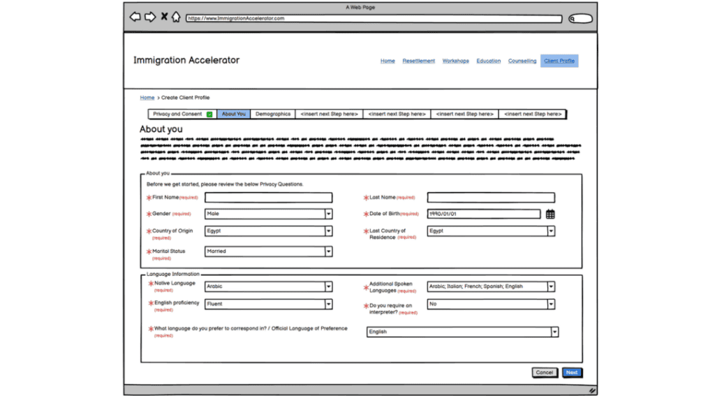 Our development team has created a comprehensive framework and reusable design to build a public-facing self-service portal in support of your resettlement program. This portal (Mobile and Desktop) enables newcomers self-service access to community and organizational services, scaling the volume of clients and allowing your service agents to focus on the more complex issues.